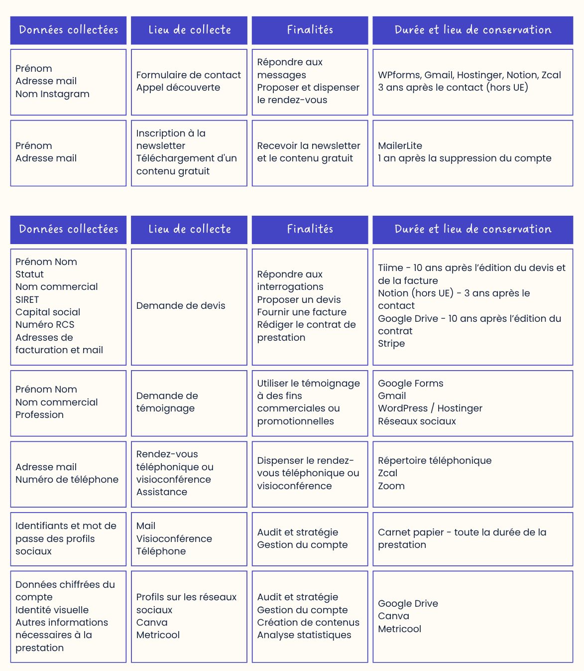 - L’établissement d’un contrat : les Données sont nécessaires à la conclusion et l’exécution du contrat entre les Parties.